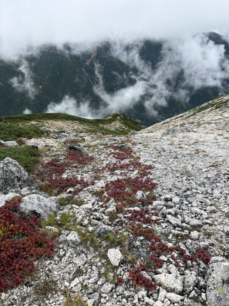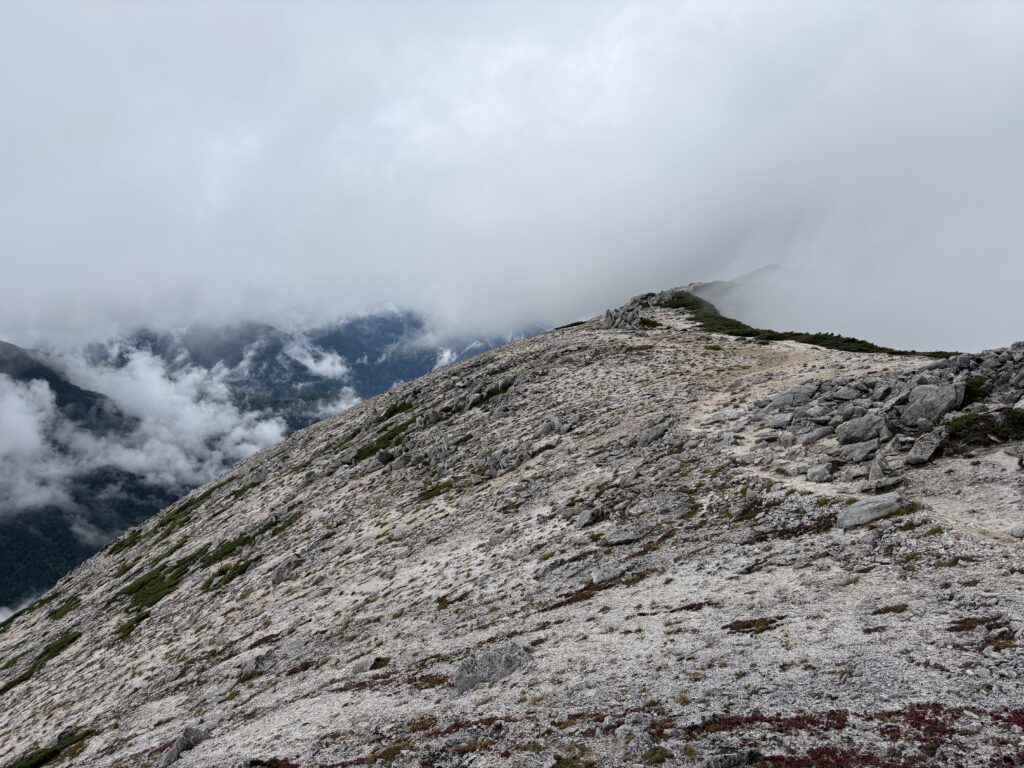 左手に読売新道を見ながら美しい稜線を烏帽子に向けて進みます。
